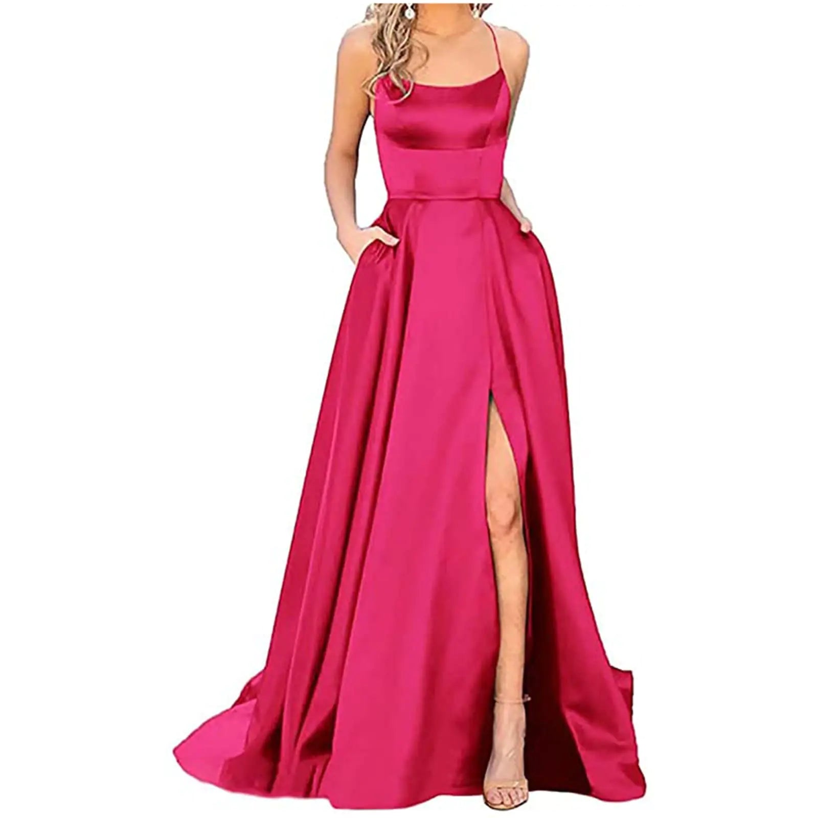 Prom Dresses for Women 2025 Plus Size Chiffon Side Slit Spaghetti Straps Evening Dress Elegant Ball Gowns A Line Off Shoulder Evening Night Party Dresses Wedding Guest Maxi Dress(Hot PinkXX-Large)